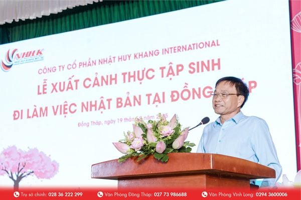 Tại buổi lễ, công ty Nhật Huy Khang đã có dịp báo cáo cùng Đoàn lãnh đạo tỉnh Đồng Tháp tình hình phái cử Thực tập sinh sang Nhật Bản năm 2024-2025. Đồng thời bày tỏ niềm vui mừng và cám ơn Đoàn lãnh đạo tỉnh Đồng Tháp đã luôn tin tưởng vào công tác đưa người lao động đi làm việc tại nước ngoài của Nhật Huy Khang trong thời gian vừa qua.